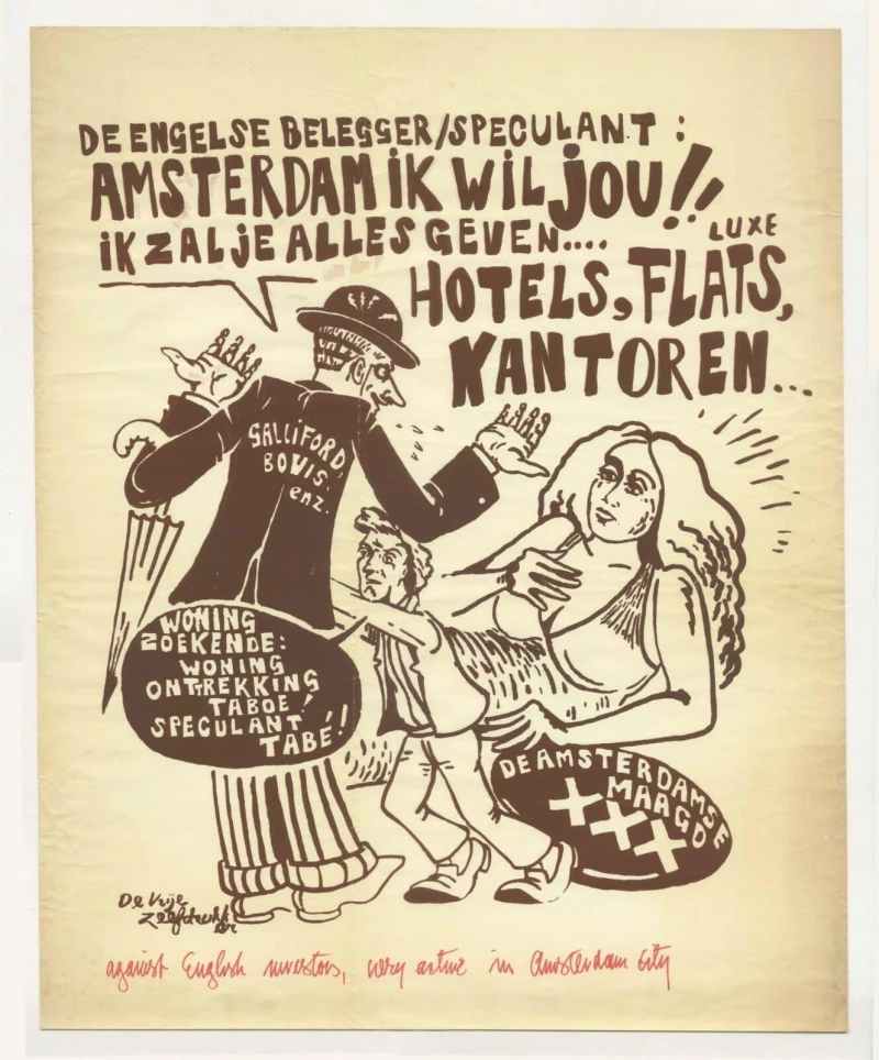 1970's Dutch/Netherlands political protest agit prop poster against British property inversors in Amsterdam .