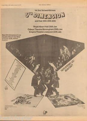 5th Dimension Poster Size Press Advert cutting/clipping 1972. Original Newspaper Print - Vg condition Ref 9