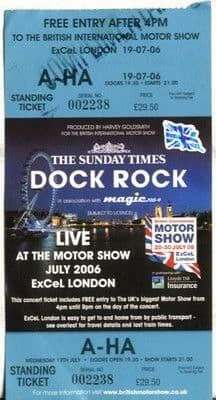 A-HA Rare Unused Complimentary Ticket Dock Rock London July 2006