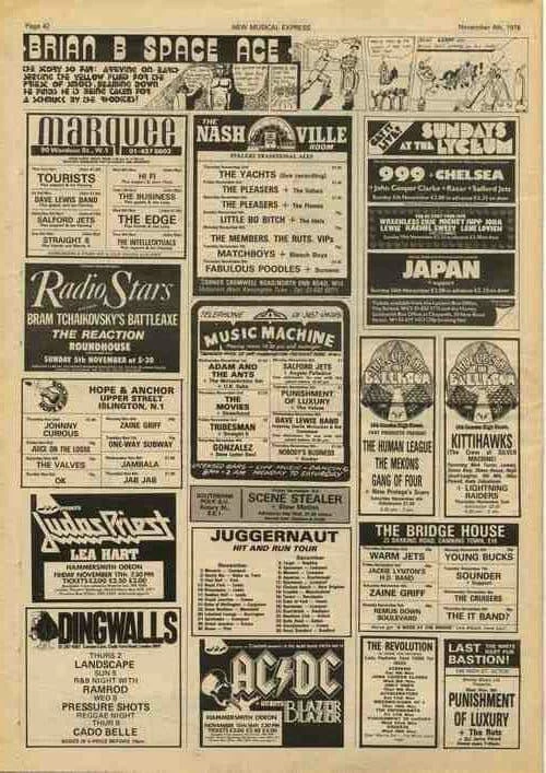 AC/DC, Judas Priest, JUGGERNAUT, SALFORD JETS gig adverts cutting/clipping 1978. 100% genuine music press cutting taken from an original magazine - it is not a copy. Size A3 Approx 11 " X 17 " ( 42 x29cm )
