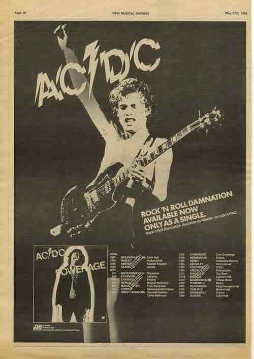 AC/DC Powerage LP + Tour Poster Size Advert cutting 1978. 100% genuine music press cutting taken from an Original magazine - it is not a copy. Size A3 Approx 11 " X 17 " ( 42 x29cm )