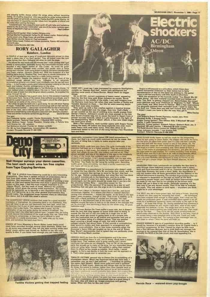 AC/DC Rory Gallagher article cutting/clipping 1980 100% genuine music press cutting taken from an original magazine - it is not a copy.