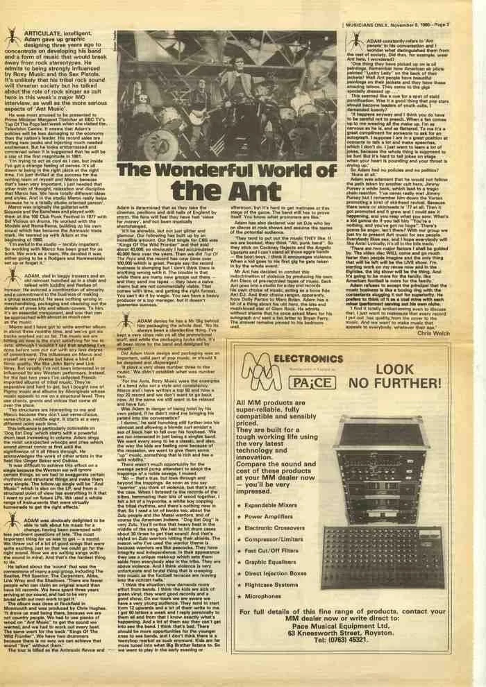 ADAM ANT Wonderful world of the ant Chris Welch interview press cutting/clipping 1980 100% genuine music press cutting taken from an original magazine - it is not a copy.