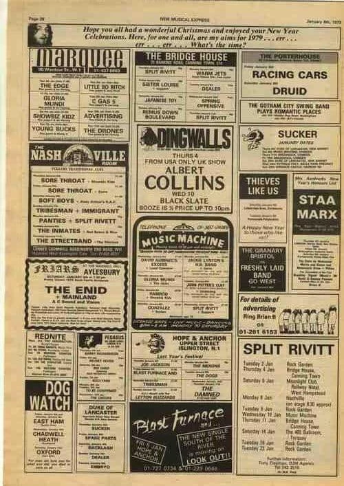 ALBERT COLLINS SPLIT RIVITT STAA MARX ENID gig adverts cutting/clipping 1979