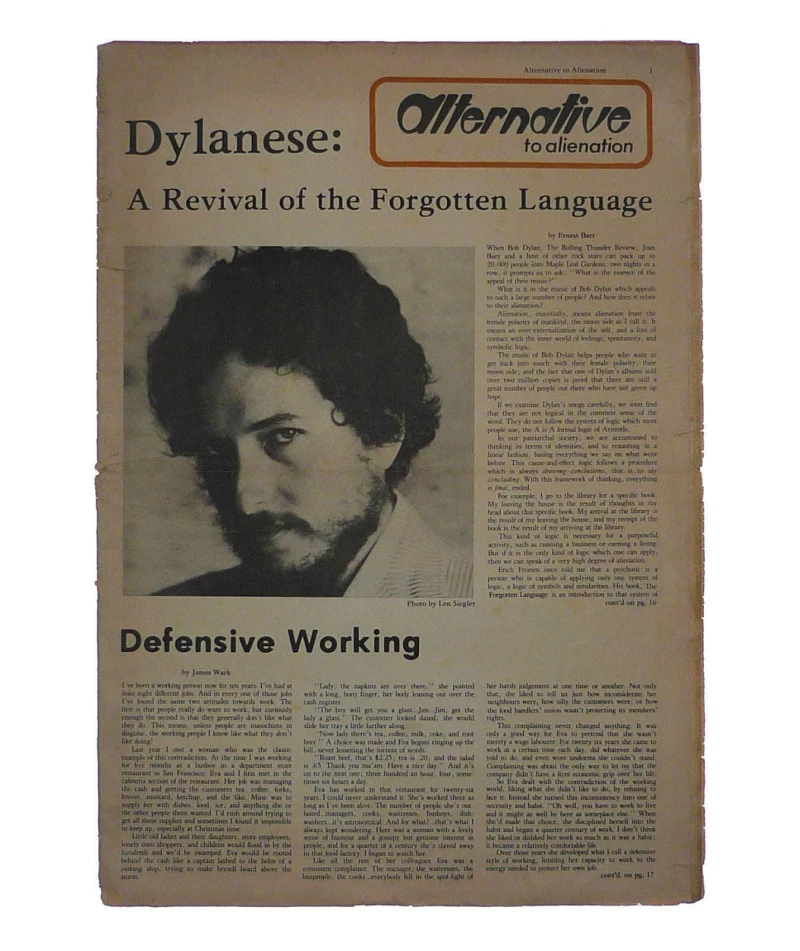 ALTERNATIVE (to alienation) Magazine No 7 March/April 1976 Bob Dylan Homophobia Mysticism & Fascism