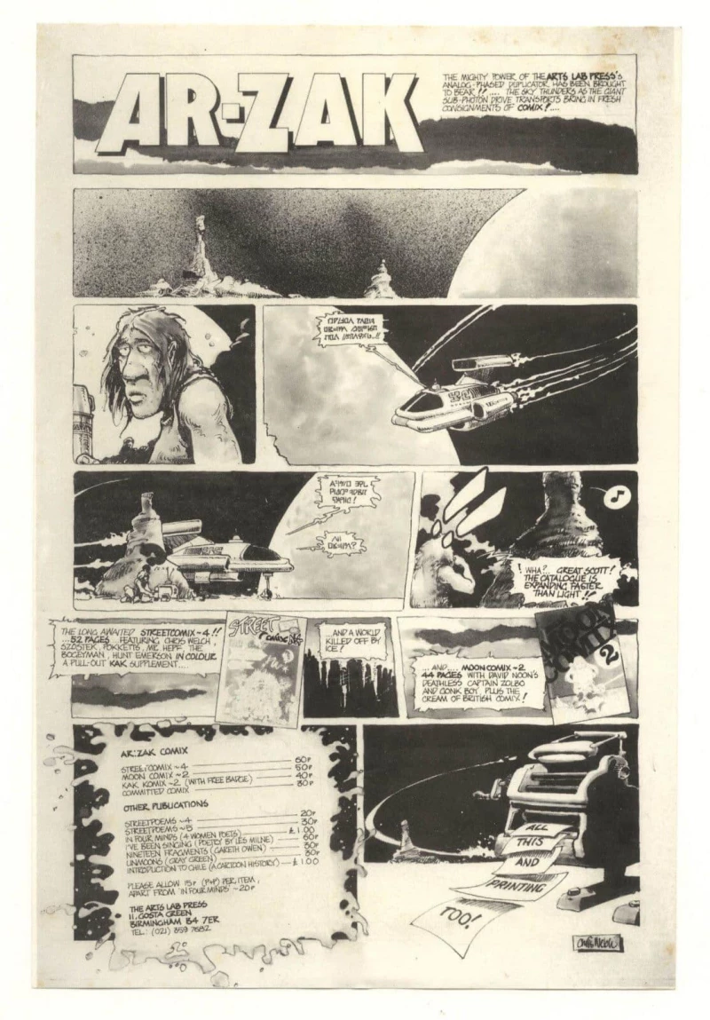 AR-ZAK/Arzach COMIX The Arts Lab Press Flyer/Advert comic Price list Rare Chris Welch