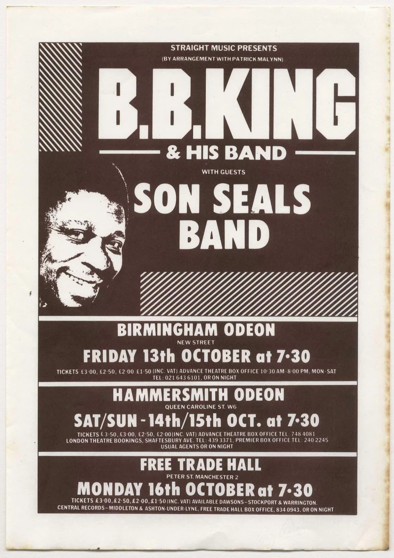 B.B. KING & Son Seals Band Concert tour flyer from October 1978 size A4.
