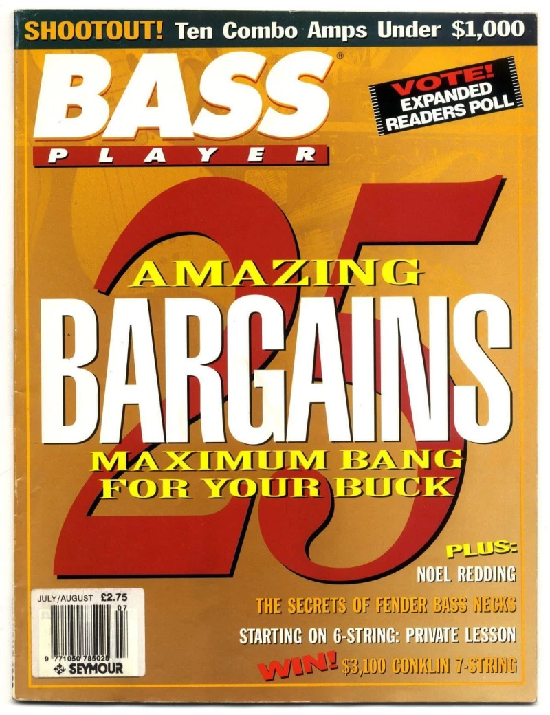 Bass Player Magazine back issue July/August 1993 Noel Redding, Miroslav Vitous, Fender Bass necks etc.