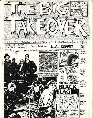 THE Big Takeover Magazine US Rock/punk/grunge back issue Very rare early 8 page xerox issue 1982 #11 Black Flag, Social Distortion, Chron Gen, Wasted Youth, Vice Squad, Lost cause, D.O.A. Batallion of Saints and lots of other groups featured including LP & singles reviews and Live gig reviews etc.