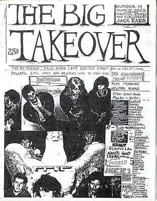 The Big Takeover is a bi-annual music mag published in New York City since 1980 by critic Jack Rabid. Jack Rabid and Dave Stein began publishing the Big Takeover as a fanzine dedicated to New York punk band The Stimulators. The title of the fanzine was borrowed from Bad Brains. The very first issue was just one A4 page, front and back, printed from copy machines and given out for free at local punk gigs. Stein left the fanzine to Rabid after one issue and Rabid has remained the dominant creative force behind the magazine since. The Big Takeover moved from one page to a few pages & then to a slightly less primitive fanzine style to the black-and-white, stapled magazine style around issue 26 in 1989. During this period, Rabid worked during the day and was still doing most of the writing, all the layout and advertising sales. Other notable contributors to the magazine in the early days included former MTV personality Tim Sommer. During the first half of the 1990s, The Big Takeover began using professional layout design and by the end of the decade had become a semi-glossy, color magazine. Circulation is currently around 15,000