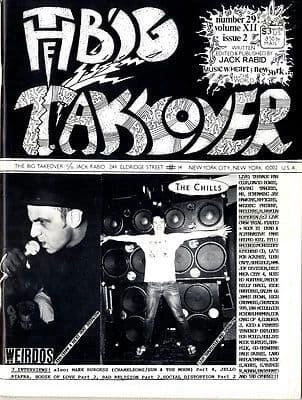 The Big Takeover is a bi-annual music mag published in New York City since 1980 by critic Jack Rabid. Jack Rabid and Dave Stein began publishing the Big Takeover as a fanzine dedicated to New York punk band The Stimulators. The title of the fanzine was borrowed from Bad Brains. The very first issue was just one A4 page, front and back, printed from copy machines and given out for free at local punk gigs. Stein left the fanzine to Rabid after one issue and Rabid has remained the dominant creative force behind the magazine since. The Big Takeover moved from one page to a few pages & then to a slightly less primitive fanzine style to the black-and-white, stapled magazine style around issue 26 in 1989. During this period, Rabid worked during the day and was still doing most of the writing, all the layout and advertising sales. Other notable contributors to the magazine in the early days included former MTV personality Tim Sommer. During the first half of the 1990s, The Big Takeover began using professional layout design and by the end of the decade had become a semi-glossy, color magazine. Circulation is currently around 15,000