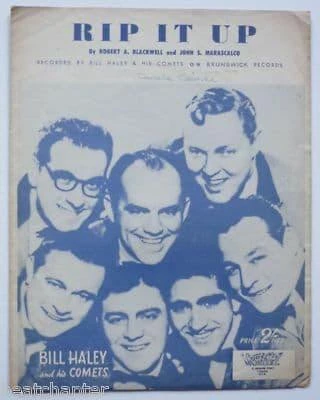 BILL HALEY Rip it up Original 1950's Rare Sheet Music. G+ condition. This has some writing on the cover, some creasing & dog eared corners. Would maybe make a great christmas gift or birthday present for a Bill Haley fan. Would look even better in a frame.