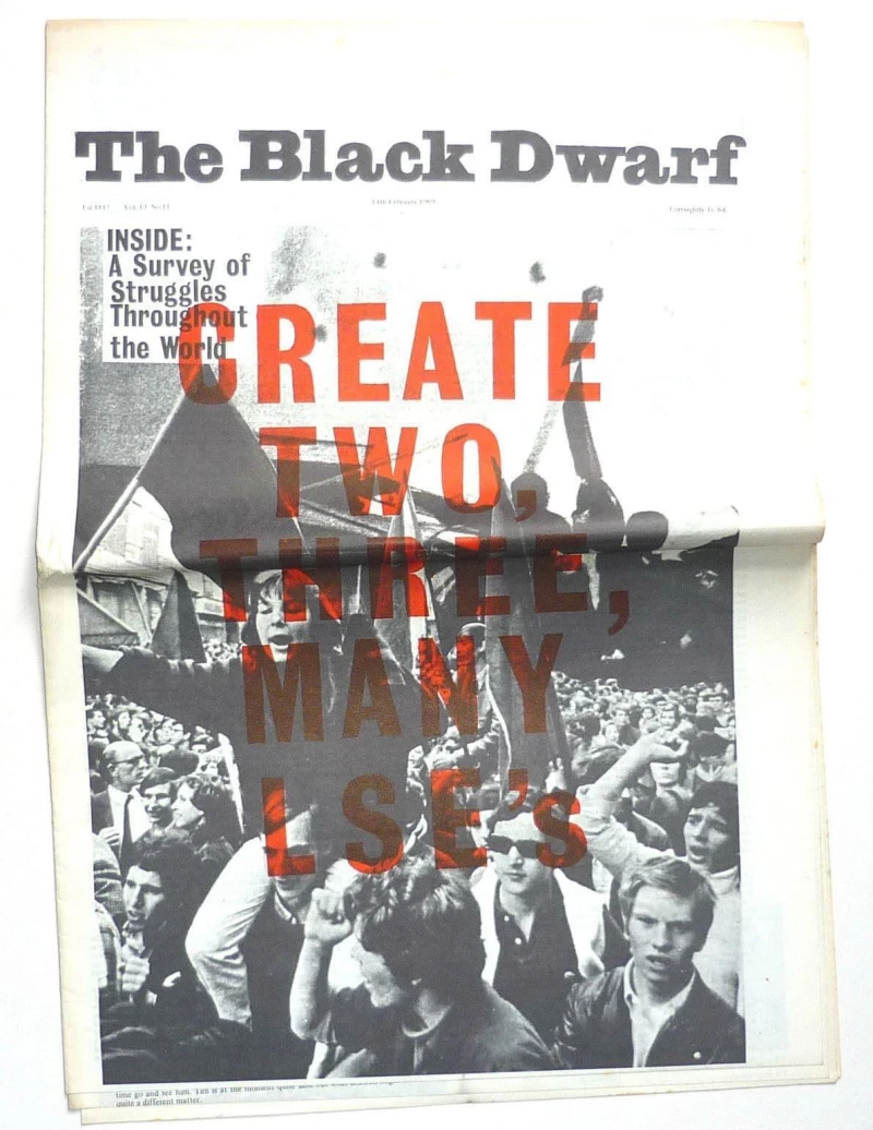 Black Dwarf Magazine 14 Feb No 11 1969 Struggles throughout the world. Black Dwarf was published between May 1968 and 1972 by a collective of UK socialists. It was edited and published by Tariq Ali until 1970, when the editorial board split between Leninist and non-Leninist ideals. Editorial and Edit Production personel included Ali, Clive Goodwin, Mo Teitlebaum, Douglas Gill, Robin Fior, David Mercer, Adrian Mitchell, Bob Rowthorn, Sean Thompson, Roger Tyrrell, Sheila Rowbotham, and Fred Halliday. Black Dwarf got its name from the 19th century radical paper of that name which was first published in 1817.