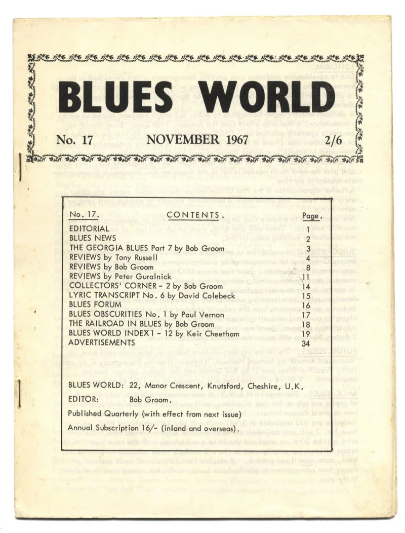 Blues World Magazine No 17 November 1967 the Railroad in Blues Georgia Blues and news
