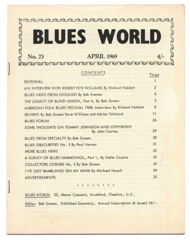Blues World Magazine No 23 April 1969 Tommy Johnson Pete Williams