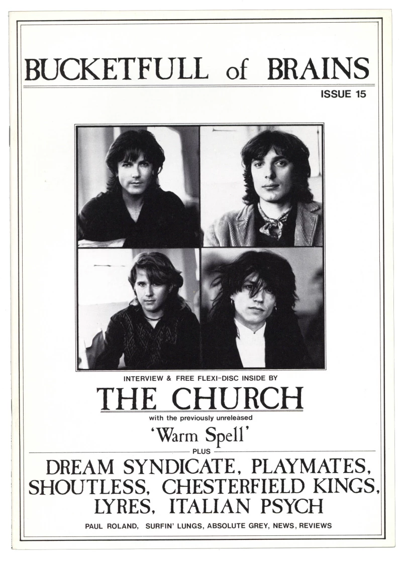 Bucketfull of Brains Magazine No 15 + The Church flexi disc plus Dream Syndicate Playmates Shoutoutless Chesterfield Kings Lyres Italian Psych Paul Roland Surfin' Lungs Absolute Grey