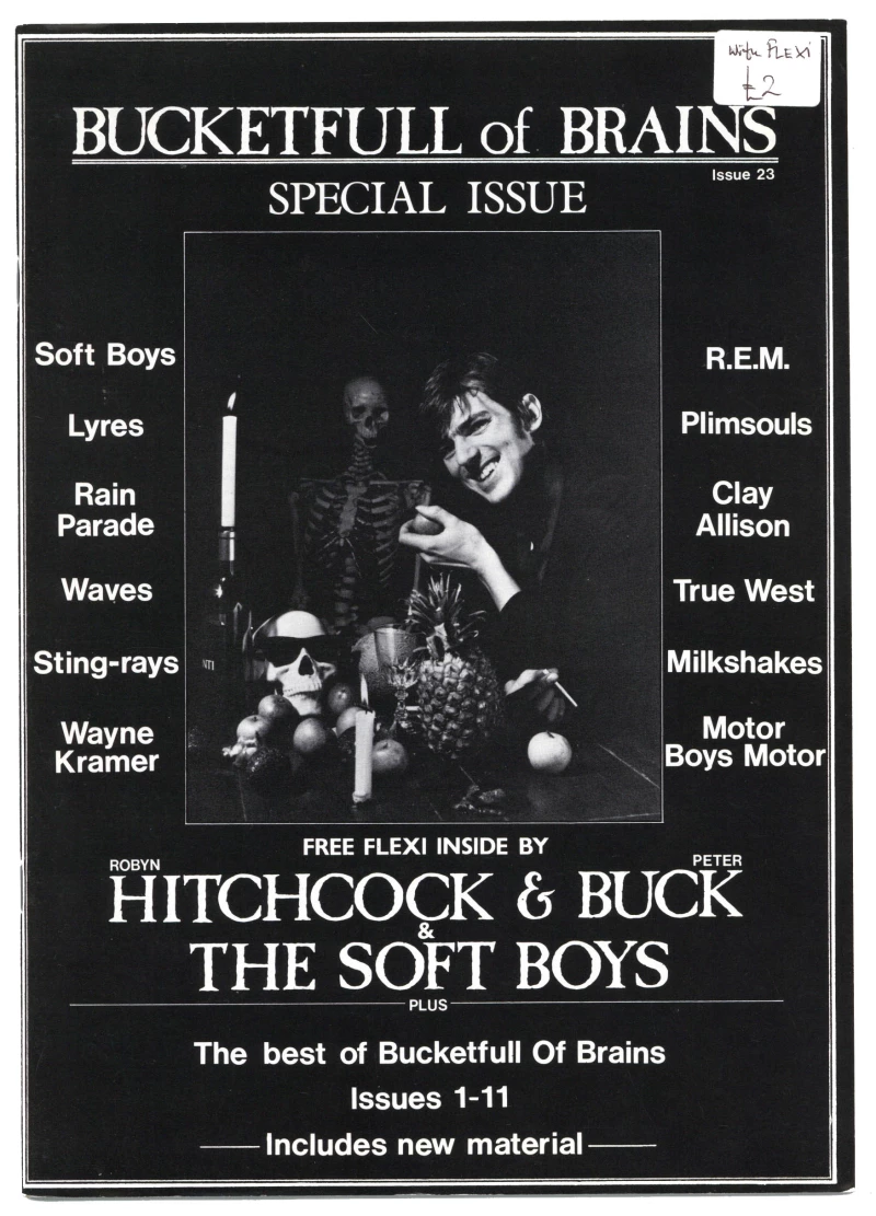 This Special Issue includes the Robyn Hitchcock & Soft Boys flexi disc plus reviews and features on Soft Boys, R.E.M. Lyres, Plimsouls, Rain Parade, Clay Allison, Waves, True West, Sting-rays, Milkshakes, Wayne Kramer, Motor Boys Motor, Robyn Hitchcock, Peter Buck, The Soft Boys, The Best of Bucketfull of Brains, Issues 1-11.