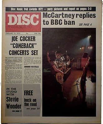 Disc & Music Echo Magazine 19 Feb 1972 Free Stevie Wonder Paul McCartney Joe Cocker Alice Cooper