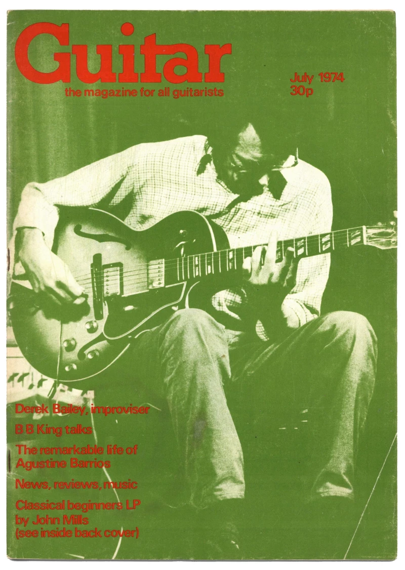 Guitar Magazine Jul 1974 features articles and interviews with BB King, Agustine Barrios, John Mills classical beginners LP, Derek Bailey - improviser.Guitar: the magazine for all guitarists