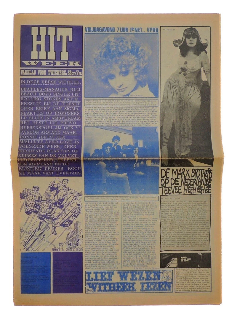 You could say Hitweek was the Dutch version of the UK International Times. For the first year it was only available in Amsterdam between 1965 - 1966 but later distributed in other cities. HITWEEK was "THE" magazine for hippies & alternative types and promoted the underground scene with articles and pictures of popular or obscure US, UK and Dutch R&B, Beat & psychedelic groups. Hitweek printed some great psychedelic artwork during 1967-1969. By 1969 Hitweek had been renamed Aloha.