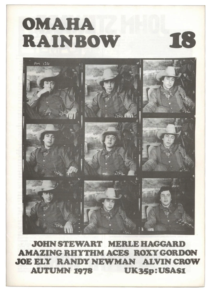 Omaha Rainbow #18 1978 Alvin Crow, Randy Newman, Joe Ely, Roxy Gordon, John Stewart, Amazing Rhythm Aces, Merle Haggard etc. Vg condition with holes punched in spine & some biro marks on a record ad on inside back cover back cover. Still a great reading copy