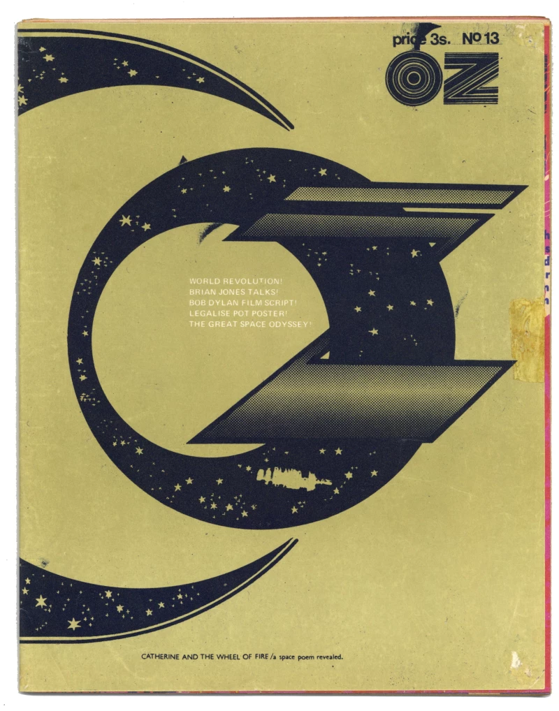 Contents includeQuadruple ‘Catherine and the Wheel of Fire’ poster Nigel Weymouth and Micheal English with Big O Posters advert on reverse.Martin Sharp Legalise Pot Rally graphic.‘We Need you Cohn-Bendit’ letter.Eva.The Fugs.Jean-Jacques Lebel.John Wilcock’s Other Scenes.IT/International Times subscription form.‘When Harrods is Looted’ by David Widgery.‘Agit Oz’ - revolutionary quotes, chart + graphics.‘Hubert Sanguine’ graphic by Andrew Fisher & David Spode.‘The May Revolution’ and ‘Philistine’s Tears – Nectar of the Gods’ by Angelo Quattrocchi.Oz Night – the Nice advert. OZ subscription/back issue page.Graffiti 1968.Transcriptions from Dylan’s Don’t Look Back.Incredible String Band ad.‘Smokeless Interzone’ by Michael Horovitz.‘The Alf-Back’ - the Queen in Australia.Ozmosis – ‘We clothe every child in napalm’ by Paul Lawson.‘Kubrick’s 2001 A Space Odyssey - The Worst Trip Ever’ by Tom Nairn.