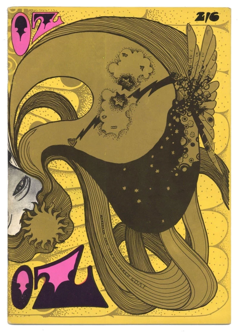 OZ Magazine No 4 + insert (May 1967) Gold quadruple cover by Michael English Contents include gold quadruple fold out poster cover by Michael English with Insert: Oz sheet No. 1 plus Martin Sharp's superb graphics and tarot cards on reverse of poster.