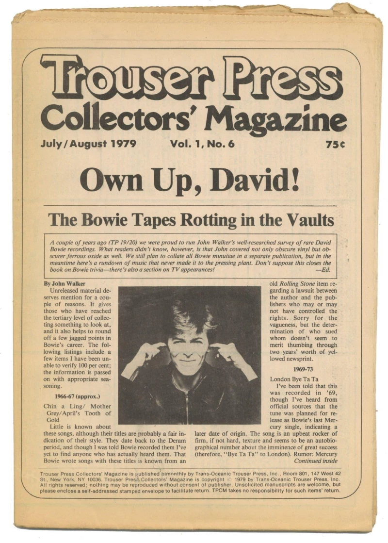 Trouser Press Collectors Magazine Jul/Aug 1979 David Bowie tapes rotting in vaults